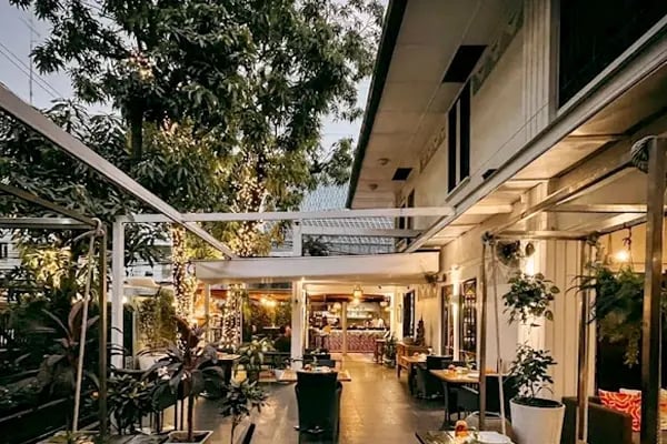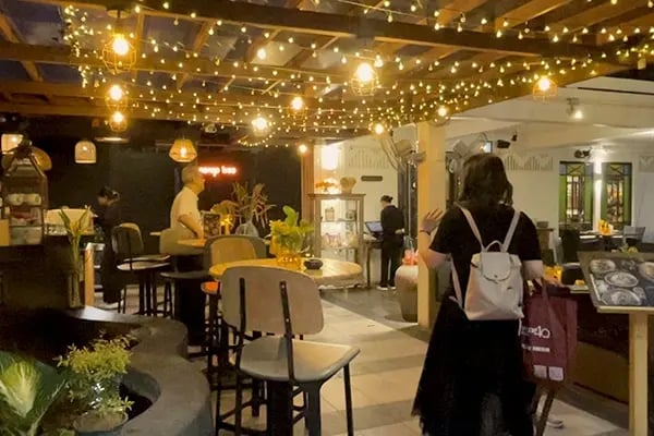 The restaurant boasts breathtaking scenery with a two-story dining area where patrons can choose between the tranquil courtyard adorned with lush greenery and stone landscapes or the cozy interior. Operating until 11:00 PM, the restaurant transforms with a gentle glow of evening lights.