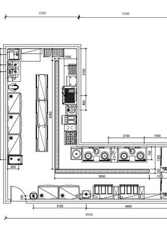 By strategically planning the locations of entrances and service flows, we carefully designed the cooking, refrigeration, and cleaning areas. The shape of this hotel kitchen is L-shaped. To minimize the need for chefs to run and cross routes between the storage and cooking areas, the engineers designed two storage points, corresponding to the dish cooking area and the snack cooking area. The dishwashing station, marking the end of the kitchen service, was positioned furthest inside to avoid interrupting other processes.