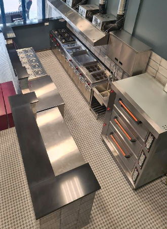 Another key to an open kitchen project is the ventilation system. Chefmax's engineers designed an efficient ventilation system based on the dimensions of the cooking area and the kitchen space, all in compliance with local fire regulations and safety standards.